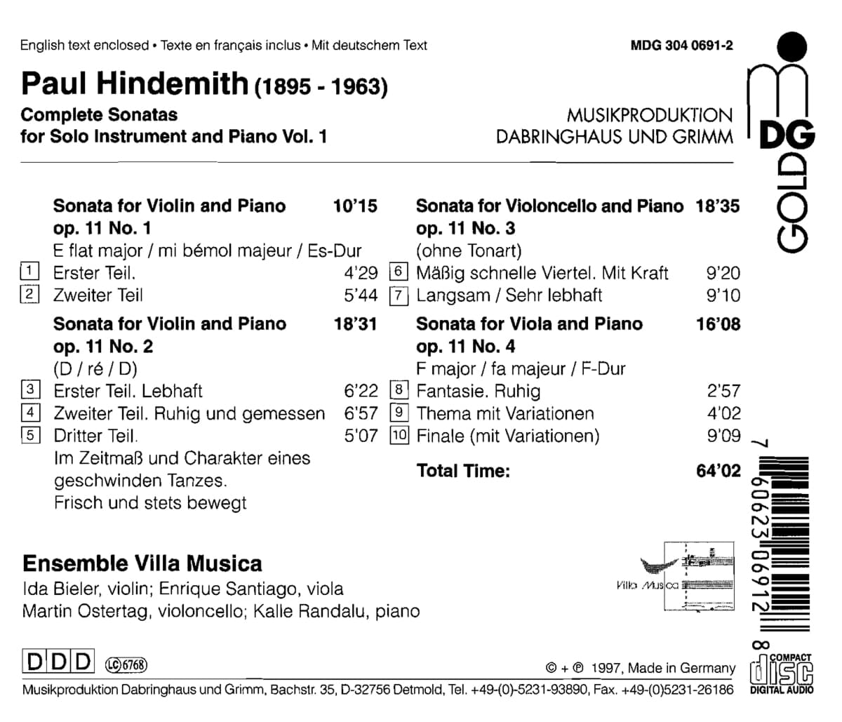 Alle Sonaten Hindemiths in einem genialen Wurf – von den Mitgliedern des Ensembles, dessen kammer-musikalische Qualitäten weltweit von Fachleuten ebenso gerühmt werden wie ihre solistischen: Dieser Gedanke steht hinter der aufwendigen Gesamt-aufnahme des Ensembles Villa Musica, deren Volume 1 mit den Sonaten für Streichinstrumente op. 11 jetzt nachgereicht wird.